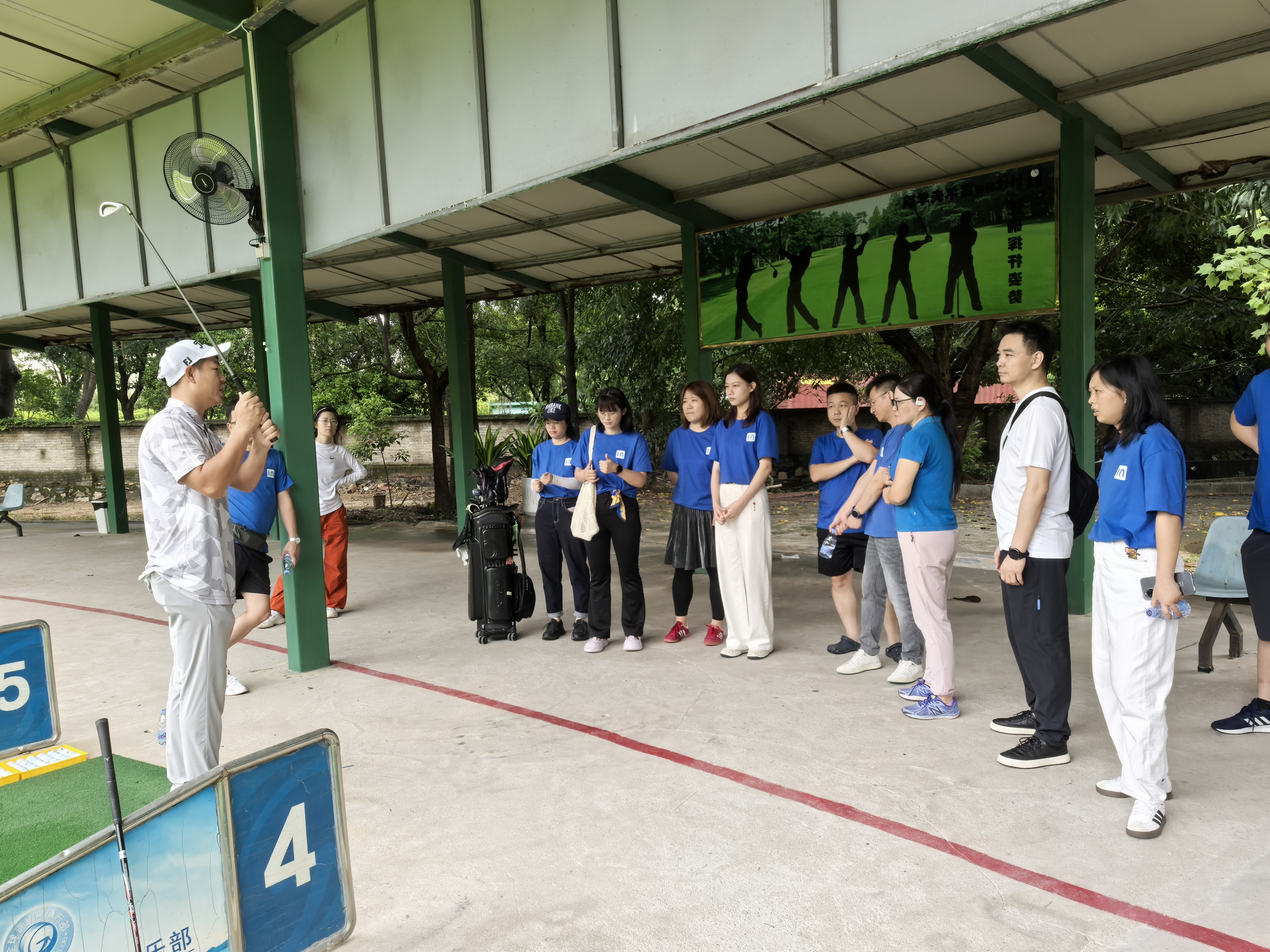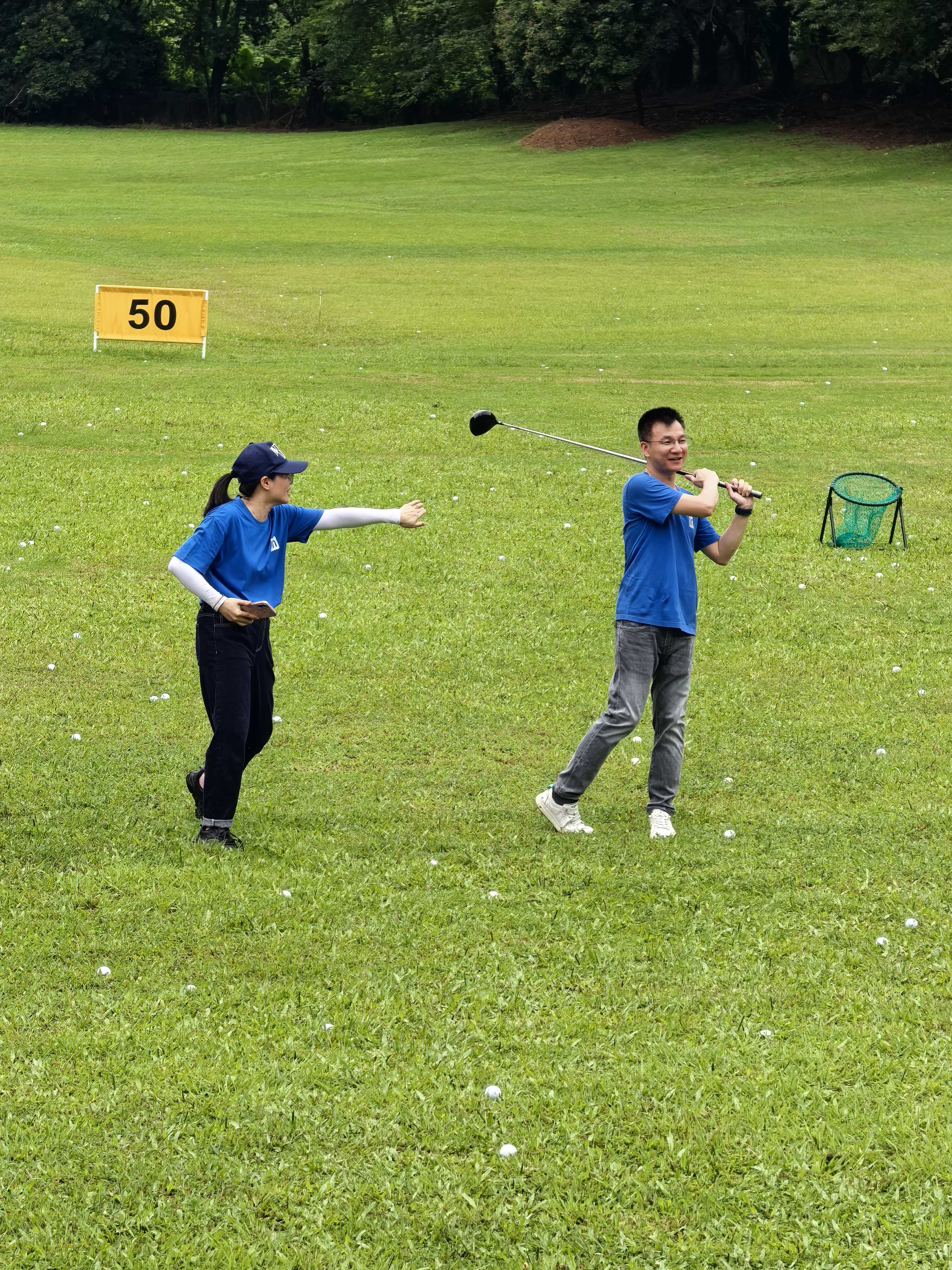 第二站,众人来到高尔夫球练习场。一下车,教练已在场地等候,随后带领大家前往指定位置,并开始讲解高尔夫球的打法。教练告知大家,打高尔夫球不仅是一项体育锻炼,有助于身心健康、缓解压力,更是一种面对失败永不言弃、面对困境勇于突破的意志磨炼。这样的意志磨炼,正是营销中心的小伙伴们所亟需的。因为在攀登业绩高峰的过程中,大家时刻面临着各种各样的困难,唯有永不言弃、勇于突破,方能达成既定的年度目标。
